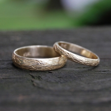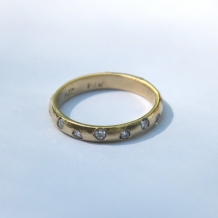 Diamond set Hammered 14kt Yellow Gold Domed Wedding or Engagement Band