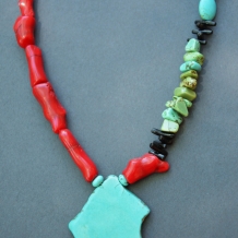 Desert Summer Red Brick Coral and Turquoise Necklace and Earring set