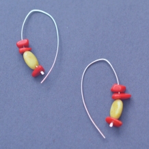 Yellow Opal and Red Coral Sterling Silver Earrings