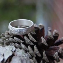 White Gold 5mm Wood Grain Textured Wedding Band with engraving
